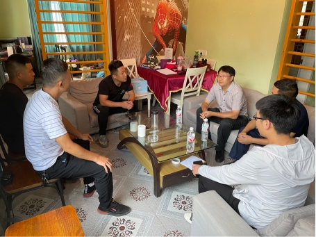 图为张瑞敏教授、孙卫华副教授与当地乡村企业负责人座谈交流。