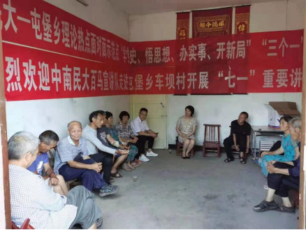 图为刘启春教授为屯堡乡双龙大树垭村宣讲习近平总书记“七一”重要讲话精神