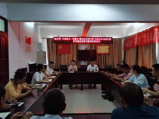 组织一次党建座谈,为党建引领乡村振兴提供咨询建议。5个宣讲小分队的专家们通过组织召开乡村振兴暨农村基层党建专题调研座谈会,了解基层党组织在乡村振兴中的现状与问题,探讨了新时代党建引领乡村振兴的思路与对策。通过召开村支两委座谈会,专家组与到会村干部、党员群众就乡村振兴和农村基层党建工作遇到的问题及解决方法进行了交流探讨,党员代表、企业代表、村民代表分别分享了对于乡村振兴政策和基层党建工作的认识和看法。