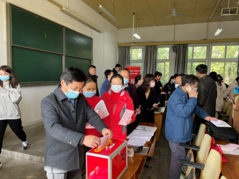 2021年12月1日12:30,马克思主义学院作为洪山区第三选区第19选举小组,开展洪山区人大代表选举活动。考虑防疫要求,教师、研究生在1号楼301教室进行投票,本科生在1号楼4楼大厅进行投票,按程序完成各项选举任务。
