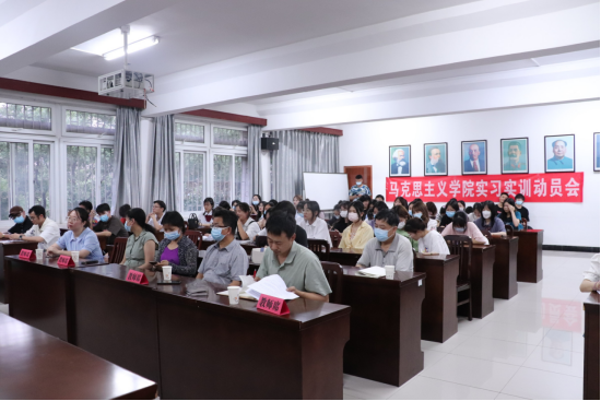 思政教研部主任朱磊老师对本年度实习实训的安排提出具体要求,包括实习实训的时间、具体任务、实习实训报告撰写要求、安全要求等方面。2018级优秀实习队员杨偲同学分享自身实习经验,并建议2019级的同学们要坚定自己的职业信念,客观全面地分析自身的综合能力和水平,更好地完成实习实训。2019级本科生杨泽晨代表全体2019级同学作表态发言:作为马院学子,应该做到少抱怨、做实事,保持谦虚的态度,不断奋斗,培养各种能力。王依依老师从以往实训经验的角度出发,阐述实习实训的意义,着重强调了同学们应在实践中励志服务社会、践行自身价值。