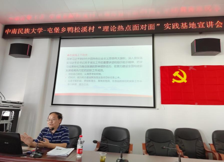 图为8月3日下午易新涛教授在鸭松溪村开展理论宣讲。