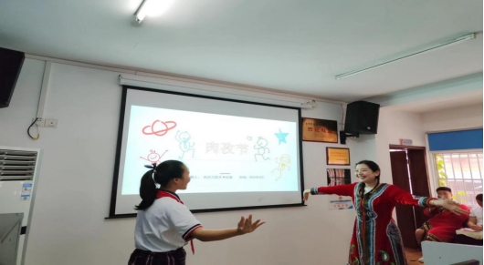 威尼斯官网来自汉族、土家族、苗族、回族、蒙古族、壮族、白族、瑶族、布依族、纳西族、藏族、满族等民族同学为大家展示了各民族的服饰、饮食、音乐、特色建筑、民族婚俗和节日盛况等,让大家对习近平总书记关于“我们灿烂的文化是各民族共同创造的”论断有了更为直观的理解。现场气氛热烈融洽,擅长唱山歌的壮族同学在全场的节拍声中唱着《刘三姐》;同学们还与鲁巷实验小学的孩子们积极互动,试穿民族服饰、学习维吾尔族舞蹈等,感受各民族风情,真正体现了“中华民族一家亲”。