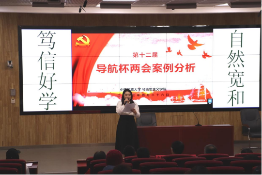 4月26日晚,第十二届“导航杯”(中南联盟)实践教育活动——“两会观察”案例分析大赛威尼斯886699赛区决赛在文一楼101成功举行。本次大赛共计17个队伍参加,马克思主义学院王志林教授、余冬林教授、覃小林副教授、王晓老师莅会担任评委,思想政治教育教研部老师出席会议。