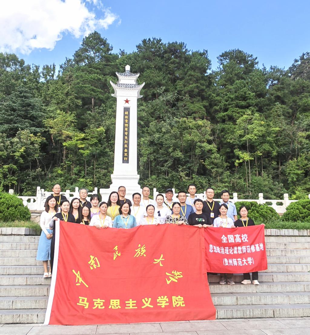 为深入学习习近平新时代中国特色社会主义思想,认真贯彻落实党的二十大精神和习近平总书记在学校思想政治理论课教师座谈会上重要讲话精神,加强高素质专业化思政课教师队伍建设,持续深化思政课改革创新,8月11日至15日,在副院长瞿晓琳、滕帅带领下,我院30余名教师赴教育部全国高校思想政治理论课教师社会实践研修基地(贵州师范大学)开展研修学习。