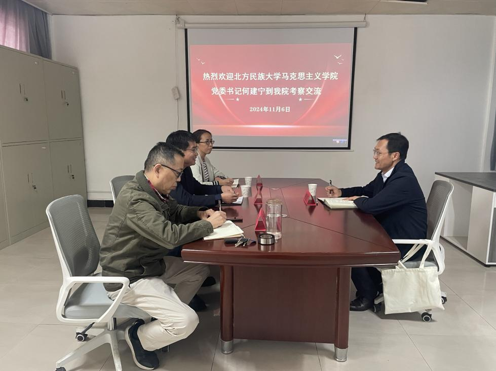 11月7日下午,北方民族大学马克思主义学院党委书记何建宁来我院调研交流。我院党委书记汤振华、党委副书记李建青、正处级组织员王奎正参加调研座谈。