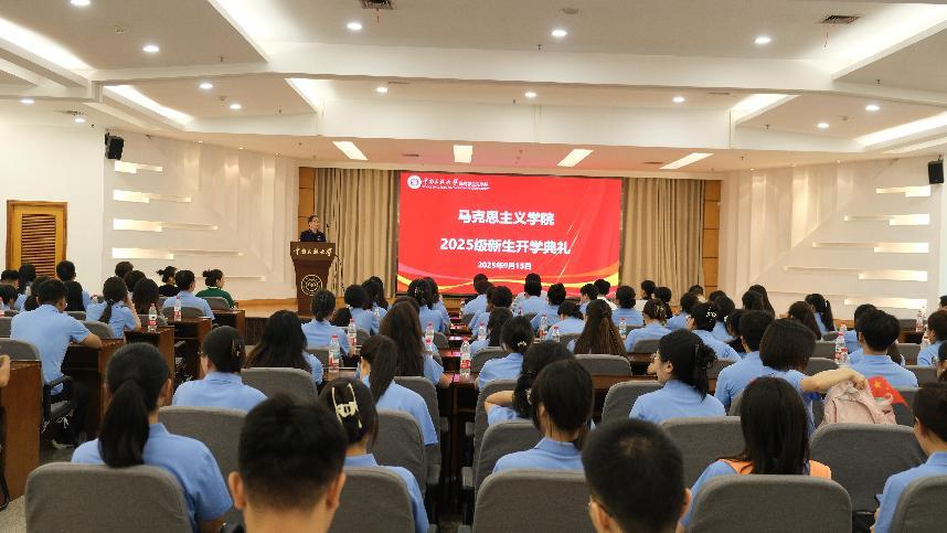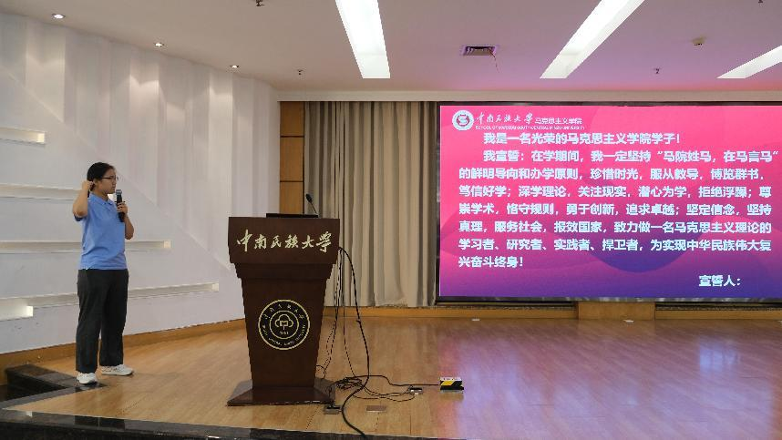 最后,全体新生在2025级本科生丁贤的带领下进行入学宣誓。同学们集体喊出了“马院姓马,在马言马”的铿锵誓言,立志成为马克思主义理论的学习者、研究者、实践者、捍卫者,为实现中华民族伟大复兴中国梦奋斗终生!