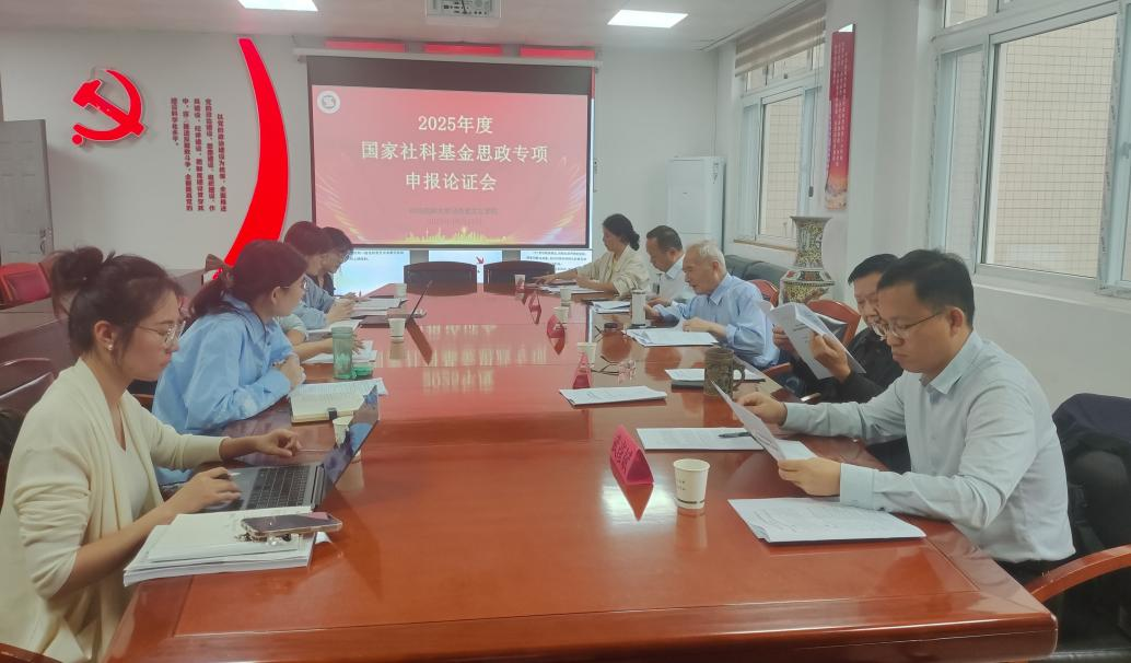 为进一步做好2025年国家社科基金思政专项的申报论证工作,引导老师们了解申报新变化、新要求,不断提高申报质量,10月17日下午,学院邀请华中师范大学俞思念教授、中国地质大学马克思主义学院党委副书记武彦斌以及我院徐柏才教授、董杰教授进行论证咨询。副院长瞿晓琳主持会议,学院拟申报教师参加论证会。