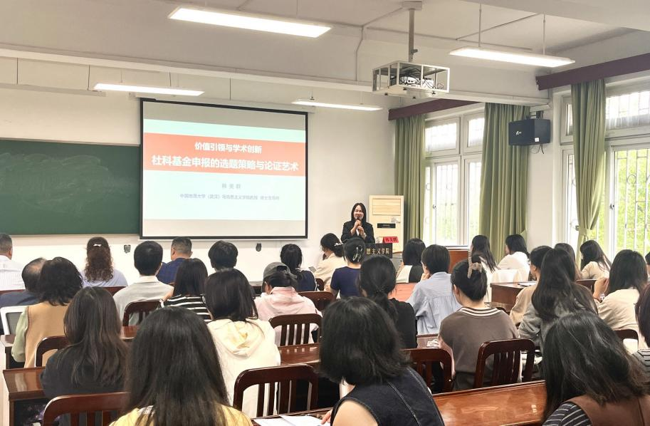 10月17日上午,我院举办领航讲堂第65讲。中国地质大学(武汉)马克思主义学院韩美群教授应邀作了题为“价值引领与学术创新——社科基金申报的选题策略与论证艺术”的专题报告,我院部分教师及2024、2025级硕士研究生现场聆听报告,报告由副院长瞿晓琳主持。
