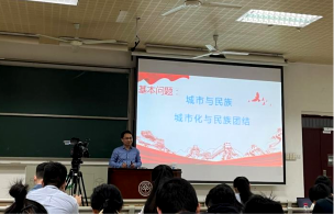 叶长青以武汉城市民族工作为例,进一步向同学们讲解“城市民族工作理论与实践”,从武汉城市民族工作的主要内容、特点、重难点、武汉城市民族工作“472”模式、城市民族工作理论体系等几个方面,具体解析城市民族工作理论和实践相统一的举措。他认为,城市已成为引发少数民族问题的热点地带,城市民族关系成为影响我国少数民族关系的重要因素,要顺应城市民族工作格局的新特点,引导民族工作与城市功能相适应,要树立“城市民族工作要站在全国高度来做”的理念,致力于维护祖国统一、民族团结、边疆巩固,铸牢中华民族共同体意识要久久为功。