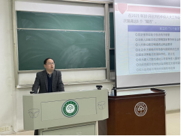 易新涛教授主要从“民主是人类的共同价值”、“人民民主是党始终高举的伟大旗帜”、“全过程人民民主是人民民主的新形态”、“全过程人民民主书写人民当家做主的新篇章”四个方面为学生展开讲解。首先,从历史的维度讲解了民主的词源、实践起源以及西方民主的实质,并为大家介绍了马克思主义的民主思想。其次,以时间线的方式梳理了建国初期的“无产阶级民主”、新民主主义共和国主张、“人民民主专政”理论、新时代中国特色社会主义民主创造性发展的过程,讲述了中国共产党是如何坚持人民民主的历程。再次,重点介绍了全过程人民民主是人民民主的新形态,从我国人民依法实行民主选举、民主协商、民主决策、民主管理、民主监督等环节,形成了“全过程人民民主”的完整链条;实行人民民主专政的国体,坚持中国共产党领导的多党合作和政治协商制度,实行统一战线工作条例,坚持民族区域自治制度,形成了“全过程人民民主”的制度体系全链条,让学生了解了有关人民民主主体的广泛性、内涵的全面性以及形式的多样性。最后,结合当今实际与自身努力,引导学生要把握民主的真正精髓,力求在“全过程人民民主”的实践中书写人民当家做主的新篇章。