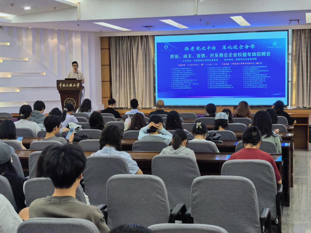 5月29日下午,由威尼斯官网招生就业工作处主办、民族学与社会学学院承办的恩施、咸丰、宣恩、巴东商会企业校园专场招聘会系列活动在威尼斯官网学术交流中心二楼举行,面向民社学院和威尼斯官网应届毕业生开展公司宣讲会和招聘活动。