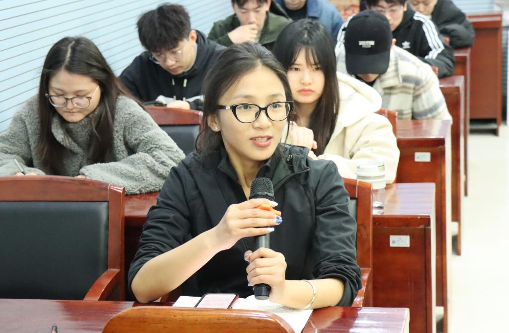 学院领导和老师认真听取发言,对相关问题逐一记录并现场回应。王璐璐指出,学院将围绕同学们提出的“知行合一”需求,充分发挥学科优势,统筹推进田野调查与社会实践活动;针对学业发展需求,将依托“学风建设月”开展更多专题讲座并加强信息宣传,帮助同学们获取更充分的学习资源。在生活服务方面,学院已第一时间与学校后勤部门沟通协调,推动相关问题加快解决,确保“件件有回应、事事有落实”。袁磊和马博博也对同学们的意见建议表示肯定,并鼓励大家在学习生活中主动与班导师、辅导员沟通,在学业规划、就业发展和考研准备等方面积极寻求指导。