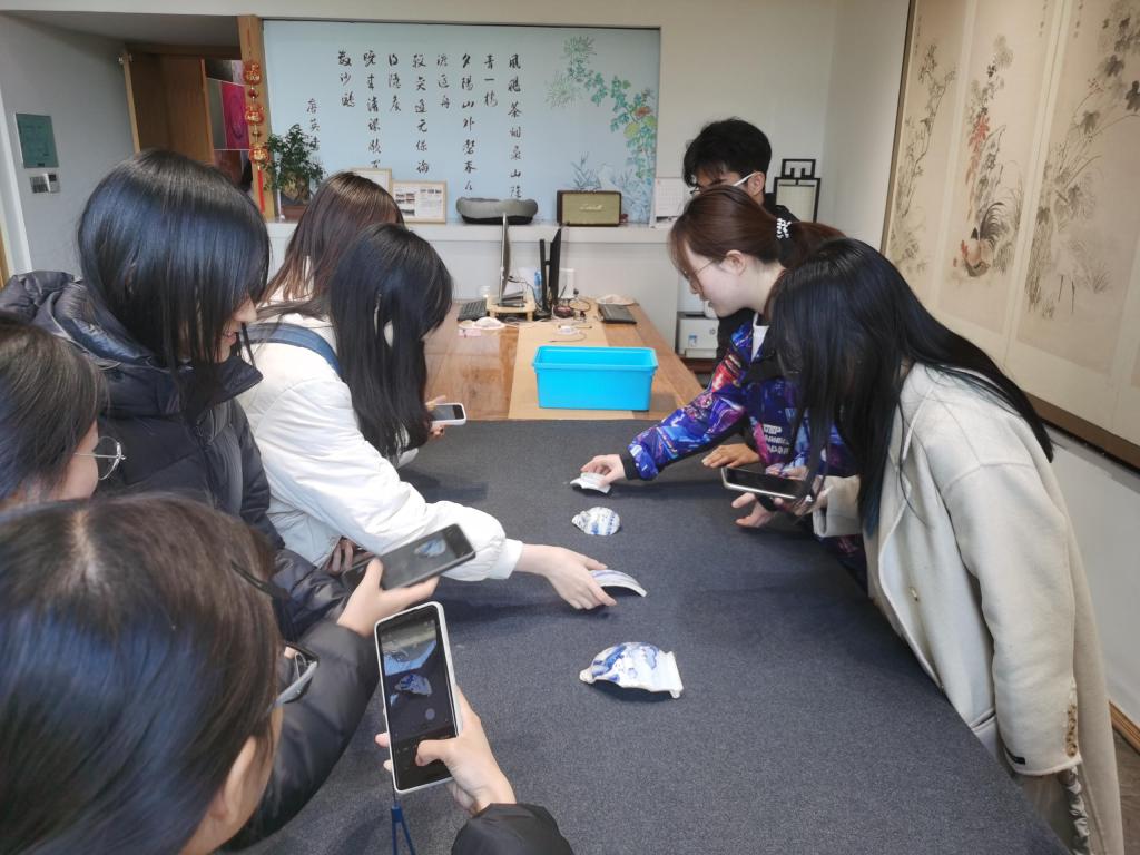 活动的高潮环节是“上手触摸历史”实践课。在文物保护规范下,学生们依次近距离观察并触摸了一组珍贵的元代青花瓷碎片标本。“这是我第一次如此真切地感受文物的温度,碎片边缘的窑火痕迹仿佛在诉说七百多年前的烧造故事。”2023级本科生丁睿玥说道。师生们结合元代青花瓷的钴料特征、纹饰布局及烧制工艺,重点观察了苏麻离青料特有的“铁锈斑”现象,思考了元青花与当时中外文化交流的密切关联。这种理论与实践深度融合的教学模式,极大激发了学生的专业探索热情。