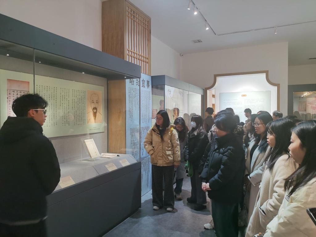 12月27日,实习团队首先来到学院共建实习实践基地——景德镇唐英学社。作为国内首家以清代督陶官唐英命名的陶瓷文化研究机构,学社致力于陶瓷文物修复与传统工艺传承,馆内珍藏有从唐代至民国时期的各类陶瓷标本千余件。在学社讲解员的引导下,师生们系统参观了“唐英与其艺术幕僚窑业贡献”特展,从宏观视角再现了唐英督陶的历史脉络与学术贡献。