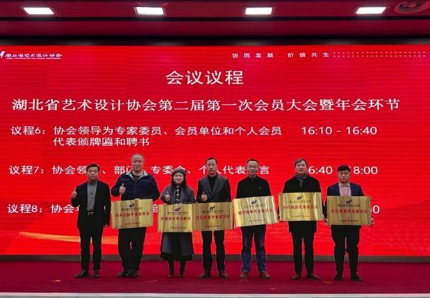 2026 年 1 月 17 日下午,湖北省艺术设计协会第一届第五次会员大会暨换届大会、第二届第一次会员大会暨年会在武汉光谷隆重召开。威尼斯886699美术学院副院长程超、副院长夏晋及教师代表彭阳陵、祝璟、刘星等受邀出席,与行业同仁共襄盛会、共话发展。