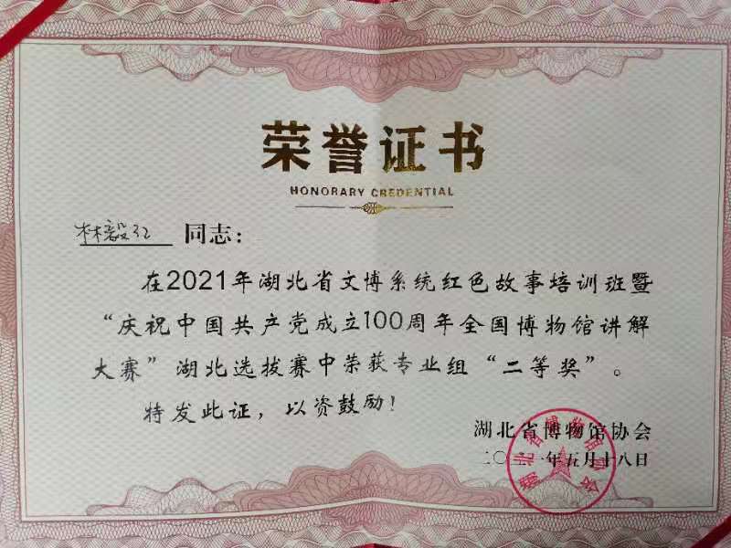 本次全国博物馆讲解大赛湖北省选拔赛分为初赛、复赛和决赛三个阶段。初赛由各博物馆组织申报,复赛提交“红色故事”讲解视频评选,决赛为现场展示评比。林毅红提交视频成功入围决赛,经过精心备赛,临场表现出色,在现场展示环节从专业组50名参赛者中脱颖而出,斩获二等奖佳绩。