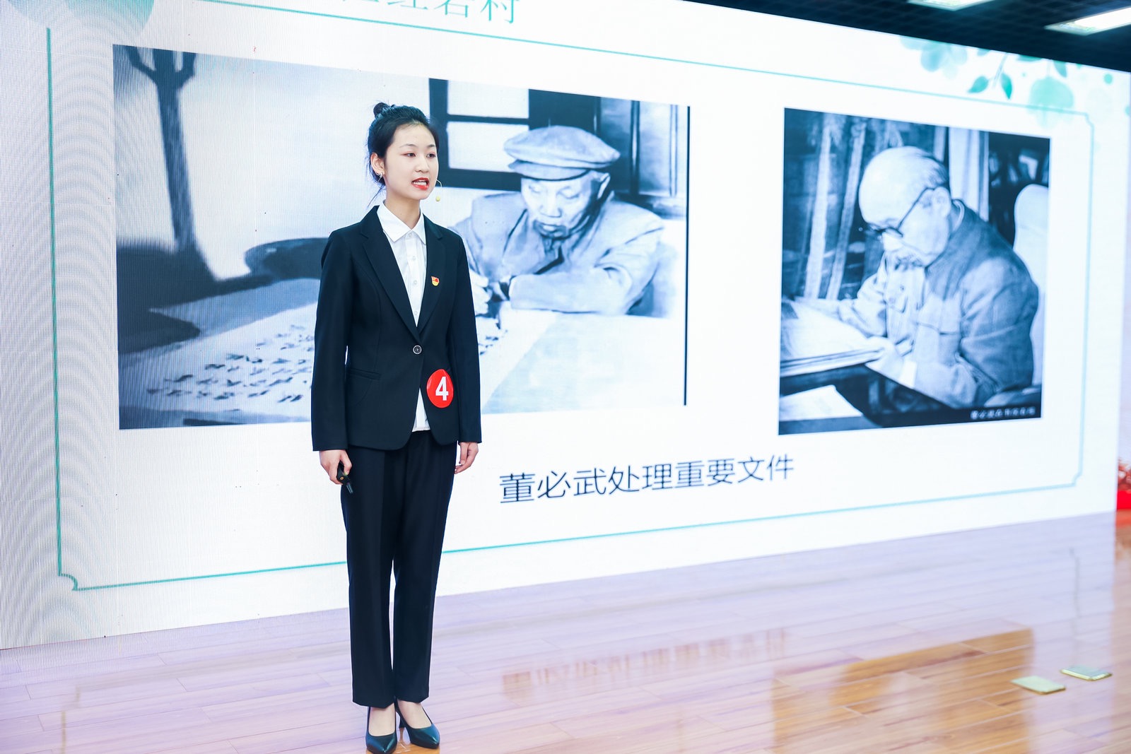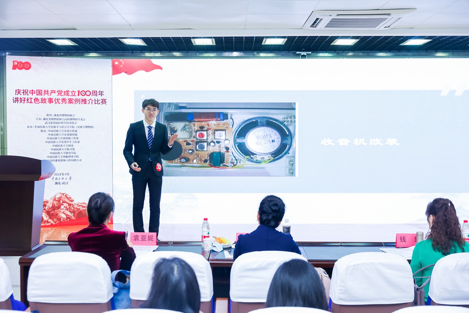 比赛中,民族学博物馆推送选手李晓鹏,将其家乡宁夏中共特别支部书记李临铭与他的“传播革命火种的公文包”背后的故事娓娓道来,真正领悟中国共产党为什么“能”,马克思主义为什么“行”,中国特色社会主义为什么“好”等道理,一举夺得一等奖;訾婧怡详细分析朱总司令的“一份账本”,让大家看到了朱德总司令勤俭持家的一面,不忘先辈创业艰辛,传递宝贵精神财富;闫旭,深情讲述“连接延安与武汉的无线电波”的故事,身临其境地带领大家参观位于汉口的“刘家小院”,感受年轻的中国共产党刘虹为党组织整理新华社广播资料的艰辛与不易;杨怡然首先以“什么是红军?”发问,全面介绍红军的发展史,深刻领会只有中国共产党才能救中国,只有中国共产党才能发展中国的道理。三位选手精神饱满、举止大方、表现优异,将此次比赛推向白热化,共同夺得二等奖荣誉。此外,石彬垚深入浅出地介绍了“董必武的检讨书”,展现老一辈革命家不仅精打细算,更是严格执行纪律要求的精神品质,其整体风貌获得各位评委老师的一致好评与肯定,夺得此次比赛三等奖。