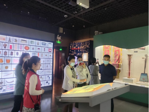一行人来到展厅内参观,通过一件件保存完好的文物了解背后的历史故事,感受中华民族优秀传统文化。倾听讲解的过程中,浑南区领导一行对中华民族交流交往交融的历史产生了浓厚兴趣,询问相关文物的来历。浑南区政协副主席苏丽岩表示:“这次参观非常值得!”游览到馆内民族文化长廊时阳光正好,池鱼竞跃。大家纷纷感叹我馆将各个民族特色文化元素浸润馆内每一处,体现了中华文化博大精深、兼容并包的特征,十分有利于传承和弘扬中华民族优秀传统文化,在日常活动中铸牢中华民族共同体意识。