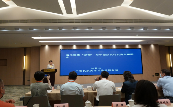 9月2日,民博专委会学术研讨会在郑州国际会议中心举办。本次研讨会以“促进各民族交往交流交融 铸牢中华民族共同体意识”为主题,全国18家民族与民族地区博物馆的近50位馆长、专家和青年代表围绕主题展开交流研讨。林毅红在大会交流发言,发言主题为《清代黎族龙被与中原汉族文化交流交融研究》,通过研究黎族黎锦龙被的制作工艺、纹饰图案,分析黎族与汉族艺术交流交融的历史智慧与当代启示。与会深度对话与交流,旨在深入贯彻落实习近平总书记关于加强和改进民族工作的重要思想,利用文物资源讲好民族团结进步故事。顺应我国民族工作和博物馆事业发展的新形势、新要求,通过与会专家学者的学术研讨,加深民族与民族地区博物馆间的了解和友谊,增进博物馆之间的协调与合作,共同推动新时代民族文博事业和民族团结进步事业高质量发展,为铸牢中华民族共同体意识贡献力量。