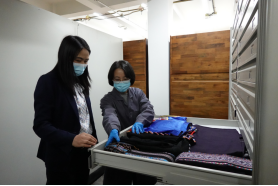 4月13日下午,林毅红带领办公室主任张敏、展览部主任陈桂来到中央民族大学民族博物馆。林毅红等人参观了该馆的基本陈列和临展,了解该馆展陈更新、临展举办等情况,并实地考察藏品保护修复。随后,我馆三人与该馆馆长张铭心、副馆长马晓华、藏品部主任马莉萍、陈列部主任原媛等人在会议室进行座谈。双方围绕博物馆如何铸牢中华民族共同体意识和开展中华民族共同体教育主题,就民族文物征集、文物保护与修复、展览策划、民族文物转化为道中华内容等具体议题进行交流,介绍各自的经验做法,表示今后两馆要进一步加强业务合作。我馆还向该馆赠送了《馆藏“三交”文物图鉴》口袋书。