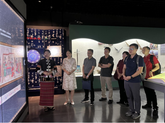 在参观过程中,展现各民族交融共生的民族文物以其蕴含的文化价值引起了来宾们的浓厚兴趣,李斌先生在展品前驻足凝视,热情提问,对民族学博物馆丰富的馆藏与融合先进科技的多样化展现形式表示赞赏。