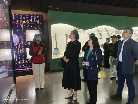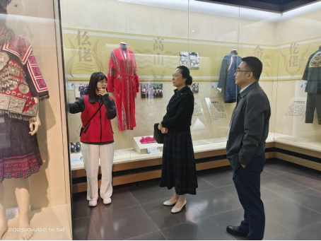2025年4月2日,云南省文史研究馆特邀研究员汪宁、云南民族博物馆信息部副主任杨晓、数智城(福建)有限公司董事长李卓苑等校友专家一行参观民族学博物馆。民族学与社会学学院院长(民族学博物馆馆长)陈祥军、党委书记钱文彬陪同参观,就民族文化保护、学科建设、铸牢中华民族共同体意识传播与校友合作开展深入交流。