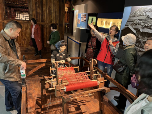 在讲解员庞霁珊的引导下,老师们依次参观了我馆《美美与共》《记忆武陵》《工艺奇葩》等七个基本陈列展厅。作为我国第一座以“民族学博物馆”命名的专业性博物馆,我馆珍藏的万余件套民族文物,吸引了老师们频频驻足、细致观摩。从工艺精湛的三滴水床,到凝结民族智慧的纺织器具,每一件展品都在无声讲述着中华民族的文化记忆与生活智慧。