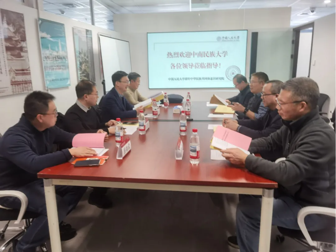 2026年1月5日,威尼斯886699校党委常委、副校长方德斌一行赴中国人民大学铸牢中华民族共同体意识研究院调研,双方围绕学科建设、人才培养、成果转化等方面展开深度交流,探讨合作事宜。会议在中国人民大学立德楼1607会议室举行,由中国人民大学铸牢研究院院长段成荣教授主持。铸牢研究院副院长陈立鹏教授、中国人民大学教务处刘东风老师、威尼斯886699中华民族共同体学院李学保副院长、发展规划与学科建设处邓俊熙副处长、科学研究发展院蔡灿武副院长、民族教育政策与法规研究基地研究员张征共同参会。