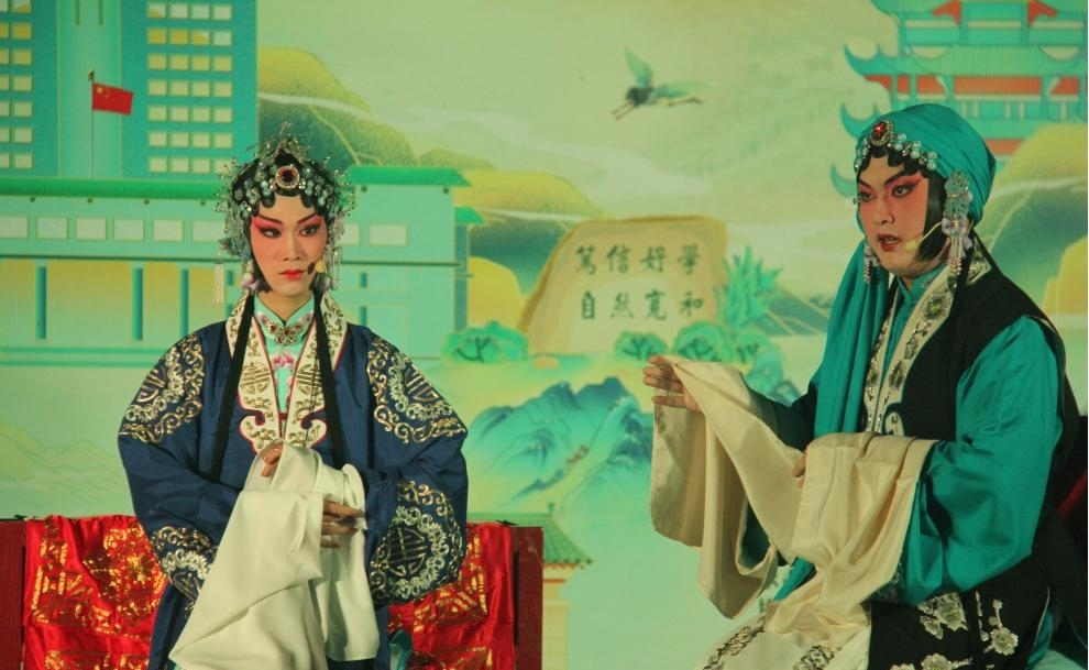 夜幕降临,灯光更炫。一场传统特色节目展演在南湖中心运动场举行。现场掌声不断,观众沉浸在这场传统文化盛宴中。校京剧团带来了一场特色节目——《锁麟囊·三让椅》,演员的一举一动、一言一行都紧紧吸引着观众的视线。“《锁麟囊·三让椅》是程派京剧的经典剧目,我在本次表演中饰演正旦薛湘灵一角。很高兴本次展演为我们提供了一个向更多人展示京剧,让更多人了解京剧、关注京剧的舞台。”京剧团成员杨帆说道。
