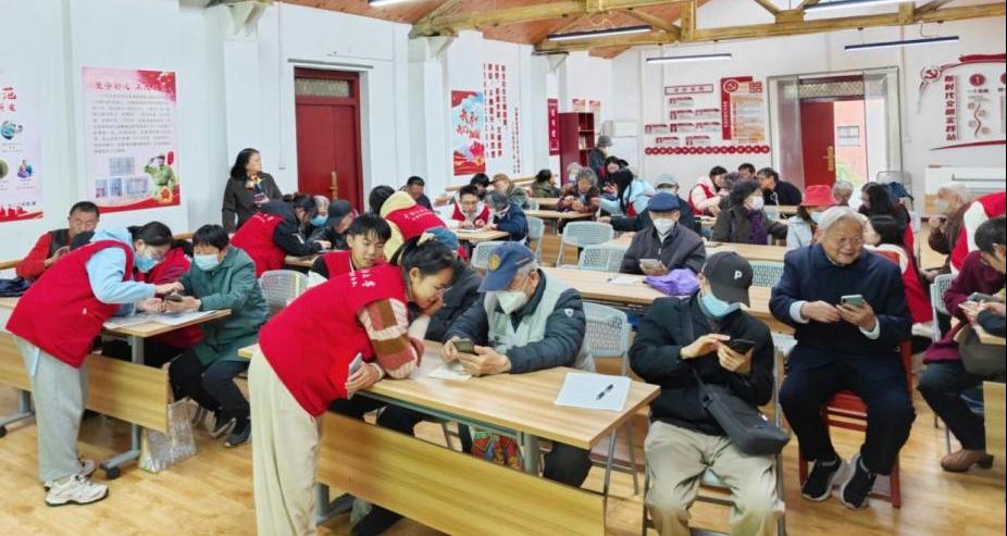 图为“防范养老诈骗,守好‘养老钱’”活动,老年人与志愿者共同演绎诈骗情景剧