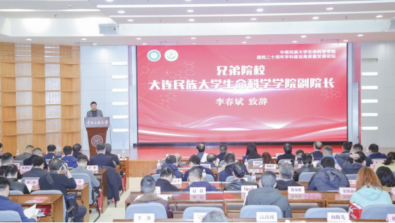 兄弟院校代表大连民族大学生命科学学院副院长李春斌致辞,希望高校之间能在学科建设、人才培养等方面继续加强合作,共创辉煌,共同为服务地区经济社会发展贡献力量。
