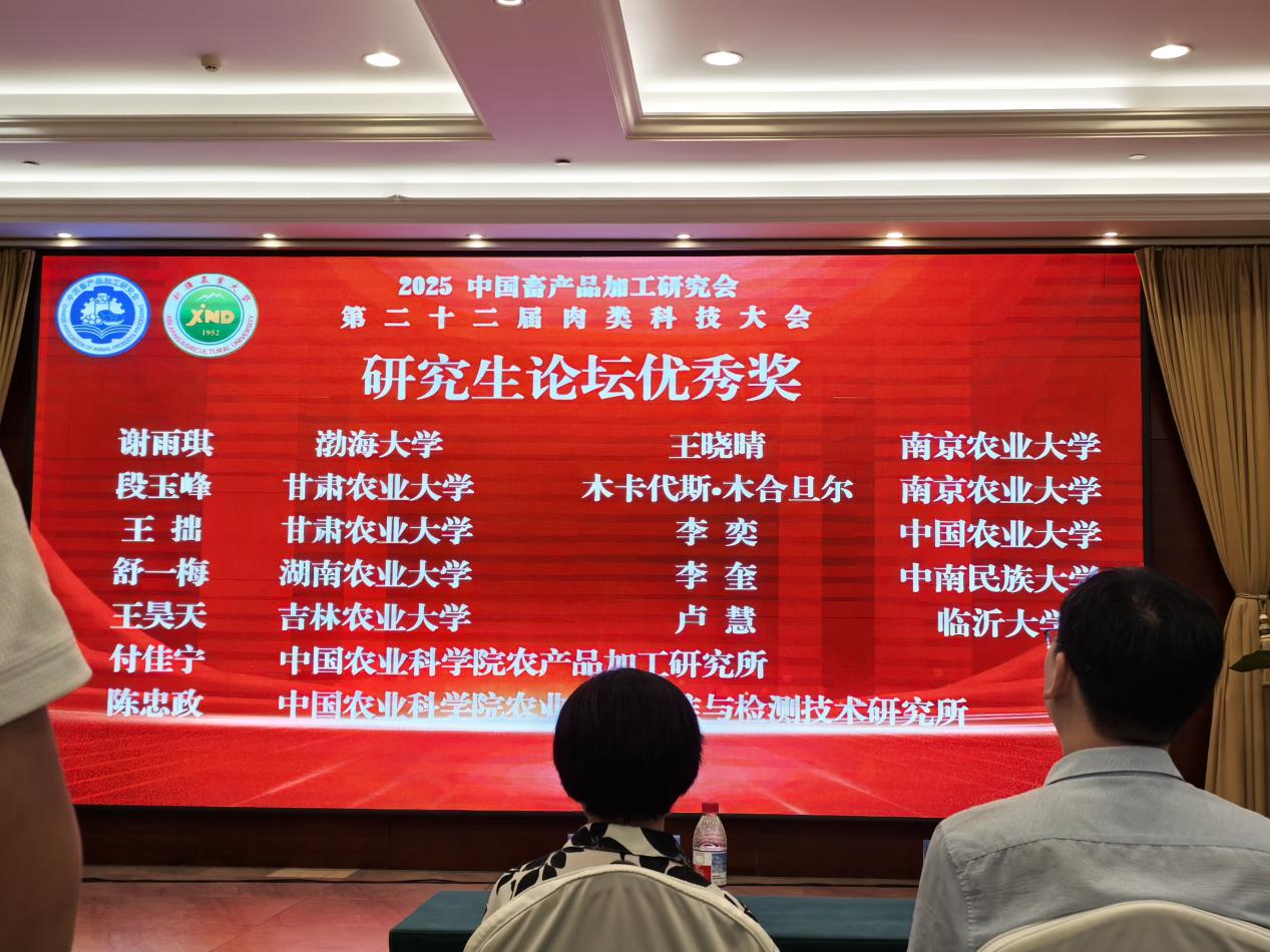 研究生李奎获第二十二届肉类科技大会“研究生论坛优秀奖”