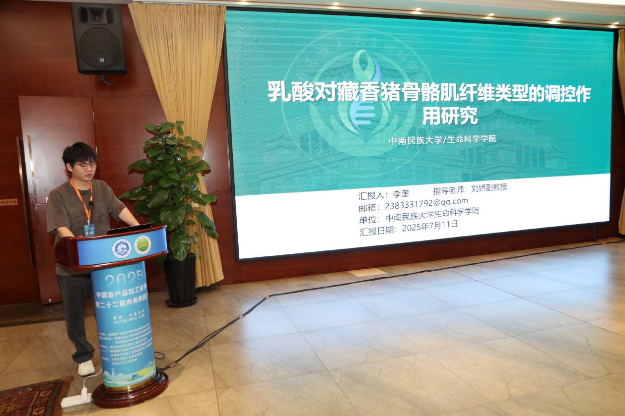 在研究生论坛中,李奎作了题为《乳酸对藏香猪骨骼肌纤维类型调控作用的研究》的学术报告,分享了团队在民族地域特色畜禽资源分子机制研究方面的最新成果,其研究为藏香猪资源合理开发利用提供了理论依据,荣获大会“研究生论坛优秀奖”。
