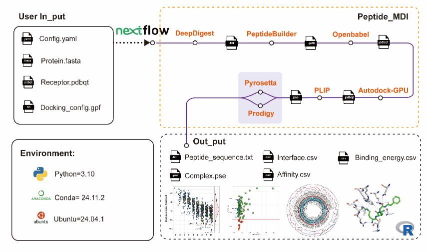 首先,从小麦醇溶蛋白中通过智能筛选得到的高亲和力谷氨酰胺肽。这类肽段能够特异性地结合钙敏感受体(CaSR),为靶向CaSR的功能食品与药物的研发提供了全新的功能肽段。相关研究成果发表在国际食品化学权威期刊《Journal of Agricultural and Food Chemistry》(中科院一区TOP,影响因子:6.2,https://doi.org/10.1021/acs.jafc.5c14216)上,论文题目为《Discovery of high-affinity glutamine-derived peptides from wheat gliadin targeting CaSR: a computational approach integrating deep learning and molecular dynamics》。该研究基于Nextflow的自主构建了智能筛选平台Peptide_MDI,以小麦醇溶蛋白来源的候选肽库为研究对象,开展多阶段的计算筛选与严谨的实验验证,筛选得到的具有nM级CaSR亲和力的肽段,其通过激活CaSR/PLCγ1/Rac1/MAPK信号级联反应,有效缓解H₂O₂诱导的氧化应激损伤,上调紧密连接蛋白的表达,促进细胞增殖,增强抗氧化防御能力,并显著下调TNF-α、IL-8、IL-6等炎症因子的转录水平。该研究提出了基于“深度学习筛选-分子动力学验证”相结合的小麦醇溶蛋白源CaSR靶向肽智能发现新策略。
