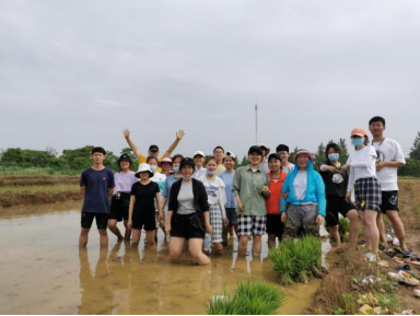 师生在田间合影