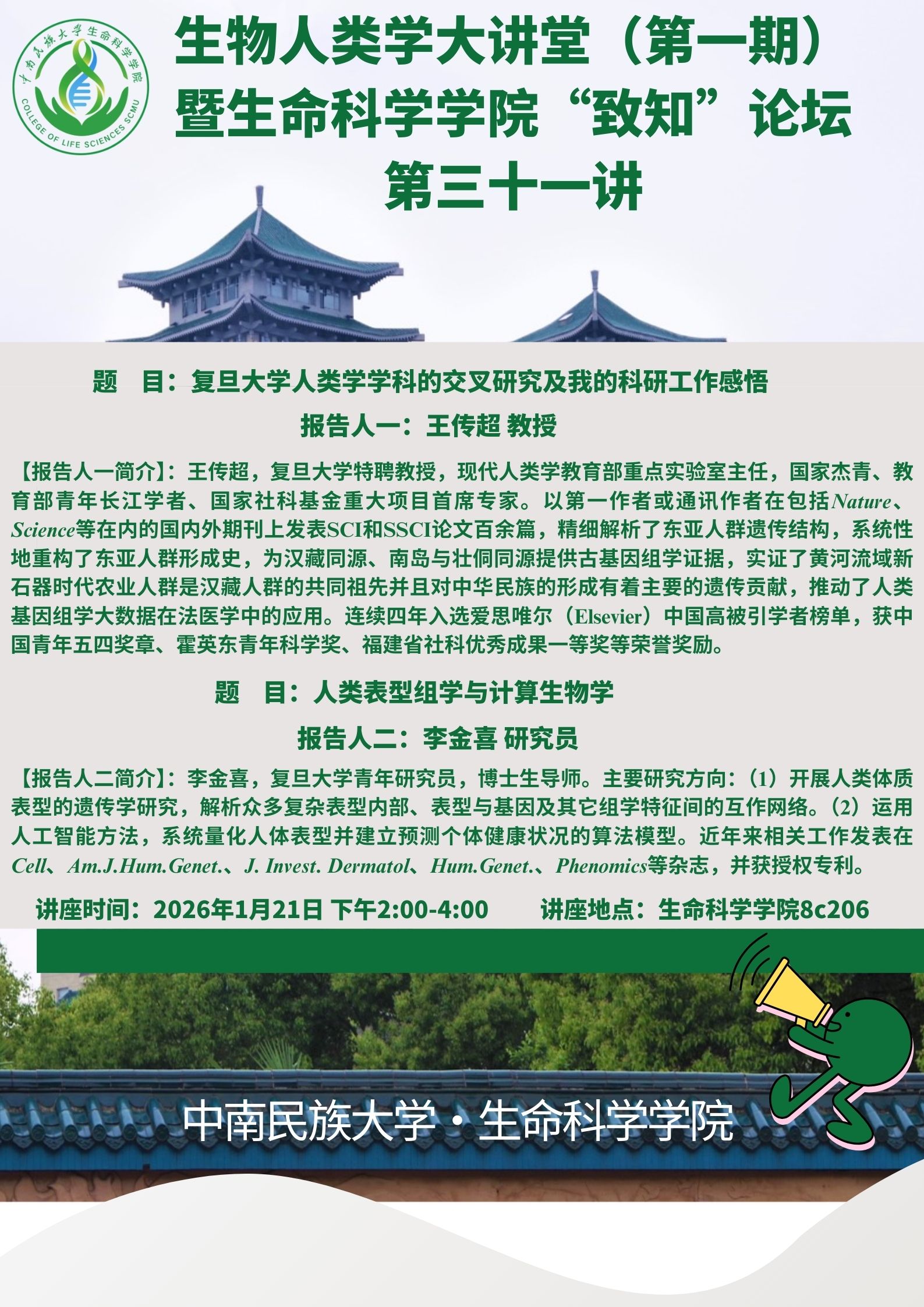 生物人类学大讲堂(第一期) 暨生命科学学院“致知”论坛第三十一讲
