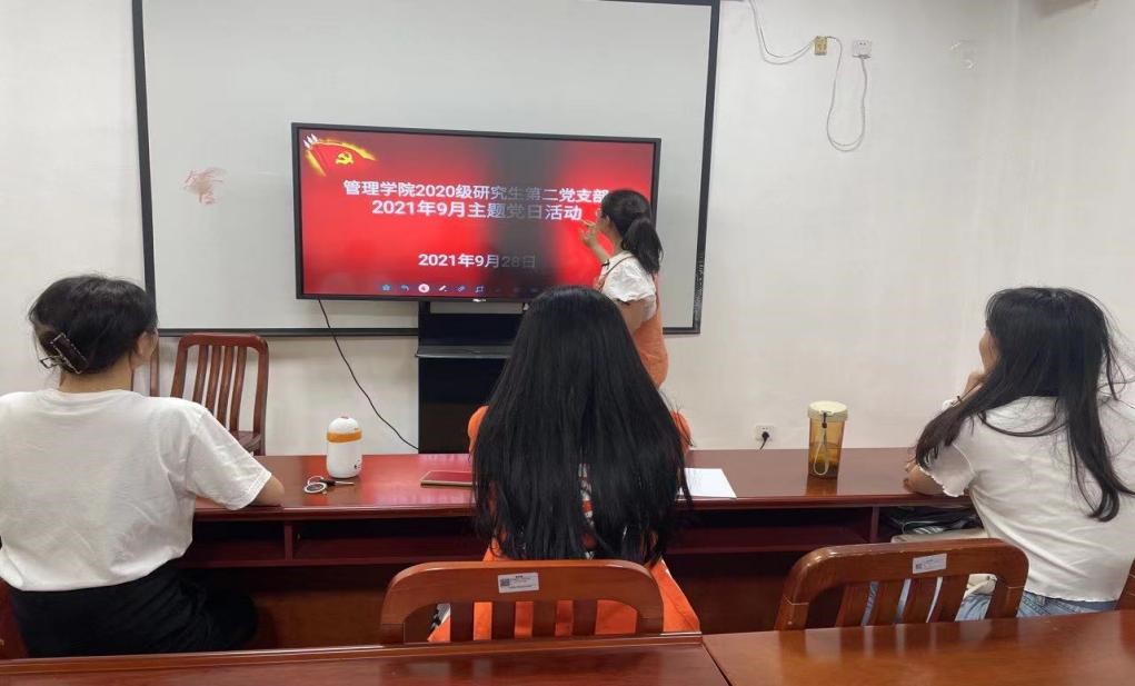 2021928日星期二,管理学院2020级研究生第二党支部全体同志在管理学院310会议室开展了9月主题党日活动。本次党日会议围绕“感悟民族工作百年光辉历程,铸牢中华民族共同体意识”主题进行,会上同志们一起观看党中央的系列讲话视频,学习习近平总书记的重要讲话精神。