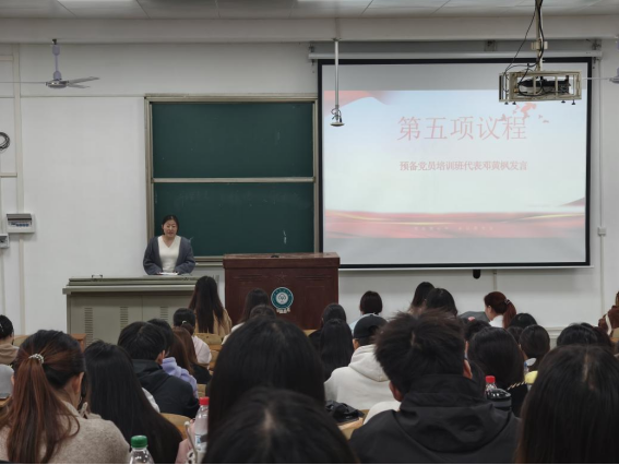 随后,学员代表依次上台发言,分享入党初心与成长感悟。会计实验2401班金靓琪作为入党积极分子代表,以校训“笃信好学,自然宽和”为切入点,表达了主动向党组织靠拢、锤炼过硬本领、勇担时代使命的坚定决心;信管实验2301班张含森作为发展对象代表,围绕践行“三个模范担当”,从政治素养锤炼、专业知识学习、社会实践参与三个方面,阐述了自身对党员标准的理解与践行路径;财务管理2202班邓黄枫作为预备党员代表,深入解读中华民族共同体意识的丰富内涵,并庄严承诺将以更高标准严格要求自己,发挥先锋模范作用,不负党组织的培养与期望。三位代表的发言情真意切、掷地有声,赢得现场阵阵热烈掌声。