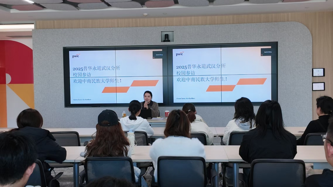 在随后的参观环节,师生们走进普华永道的办公区与企业文化展示空间。整洁高效的办公环境、人性化的休闲区域以及充满活力的“文化长廊”,生动呈现了事务所以人为本的管理理念与专业严谨又不失温度的组织氛围。同学们在沉浸式体验中,将课堂所学的理论知识与真实的职场场景相联结,进一步强化了对专业实践应用的直观认知。