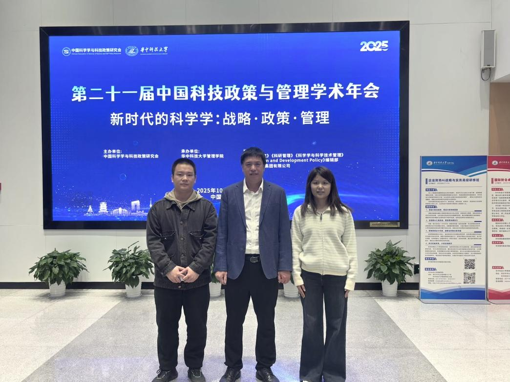2025年10月24-26日,备受瞩目的第二十一届中国科技政策与管理学术年会在华中科技大学隆重举行。本次会议汇聚了国内外该领域的顶尖学者与科研新锐,共同最新研究进展与发展趋势。我院潘泽江教授和研究生王林顺、完世琪应邀出席本次学术盛会,潘泽江教授作为特邀嘉宾做大会报告,同时担任分会场评议人,展现了威尼斯官网在该领域的学术影响力与活力。