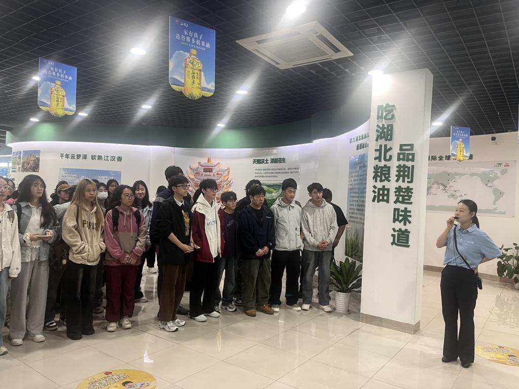 益海嘉里集团讲解员为学生介绍公司概况。益海嘉里金龙鱼集团作为国内重要农产品和食品加工企业,其生产车间实现百分百智能化,单线产能达每日两千多件;生产线配备高精度视觉检测仪器,对产品实现100%无遗漏的全面“体检”;外包装环节的自动化贴标一气呵成,展现了流畅的协同作业。通过参观,一个以“金龙鱼”为核心品牌、实施多品牌战略的综合性食品产业集团形象清晰地呈现在师生面前。