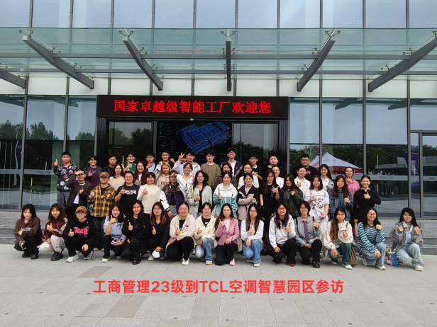 随后参访师生深入TCL空调智能园区。TCL空调智能园区“绿色化”“智能化”的深度融合令人赞叹:光伏发电板全覆盖并有余电储存,结合“海绵体”系统,构建起高效的绿色循环;数字大屏上车辆、人员、设备等数据实时更新,实现全域智能化管理;“黑灯”自动化生产车间整机组装,展示了一根铜管蜕变成一台空调的高度自主全过程;新风空调专线及AI技术的深度应用,确保了TCL空调在国内的重要地位。