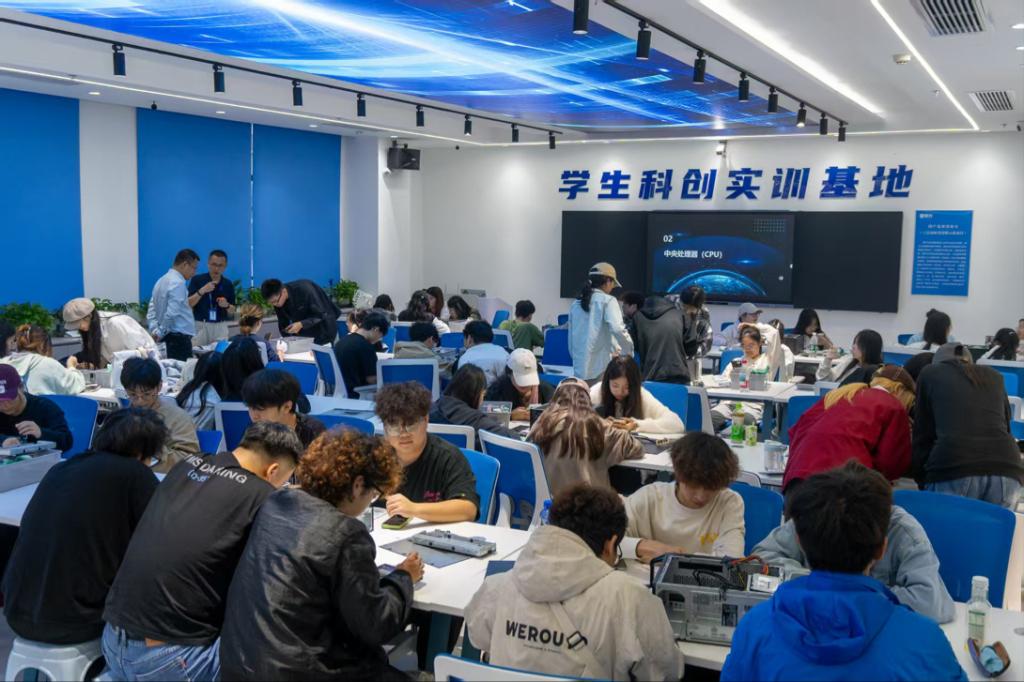 在科创实训基地,负责人给同学们讲解中国信创电脑的发展历史,并介绍了芯片制造技术与星闪技术。同学们尝试拆卸、安装实验主机,深入了解、主机构造。随后师生参观企业产线、见证一台电脑的诞生,了解到攀升科技根据客户订单进行个性化生产,通过数字化看板实现实时生产可视化;提升机实现物料智能传输,智能仓储系统实现从生产到物流的智能化。在星闪实验室,同学们观察芯片制造,体验星闪技术,感受星闪鼠标与其他鼠标的差异,切实体会到国产技术的崛起。