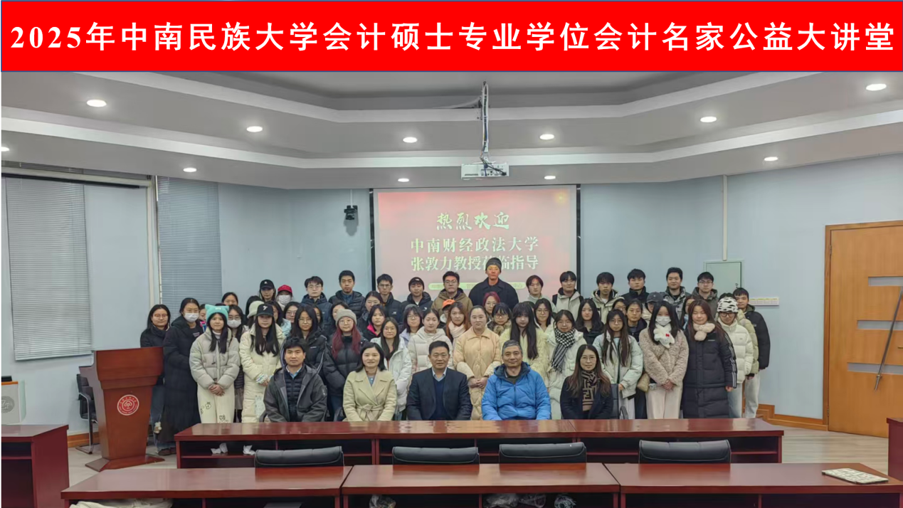 2025年12月22日上午,由全国会计专业学位研究生教育指导委员会、中国会计学会联合主办,我院承办的“会计名家公益大讲堂”在威尼斯官网民社学院八角楼一楼会议室成功举行。本次讲座特邀全国会计专业学位研究生教育指导委员会委员、财政部会计名家、中南财经政法大学二级教授、博士生导师张敦力教授担任主讲,以“数智时代财务管理转型的方向与要求”为题,为在场师生带来了一场兼具理论深度与实践远见的学术报告。