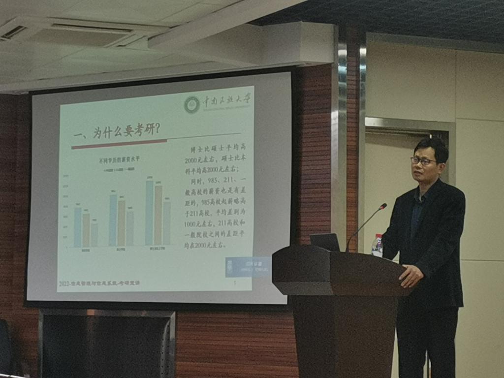 为了帮助管理学院信息管理专业学生进一步了解考研及就业形势、树立正确的考研和就业观,4月29日下午14:00信息管理与信息系统专业在16号楼二楼报告厅召开了2019级考研就业动员交流会。本次活动由信息管理系杨单老师主持,张劲松院长及信管专业2019级100余名学生参与了此次活动。