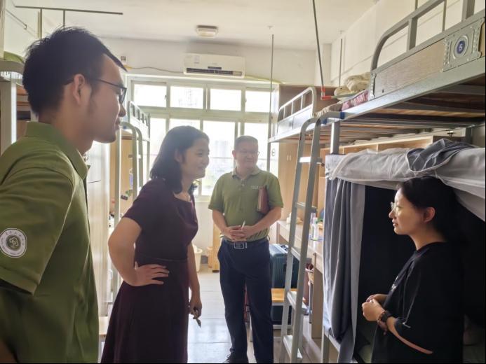 为更好地了解2024级新生报到后的生活情况,9月7日下午和9月8日上午,管理学院党委书记闻亮、院长翟华云、院党委副书记李明亮、学院辅导员卢海涛、李丹、涂帅林等走访学院2024级本科生新生宿舍,为2024级的同学们送去了暖心的问候与祝福。
