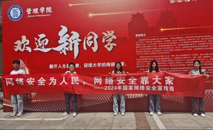 为积极响应国家网络安全宣传周要求,践行“网络安全为人民,网络安全靠人民”这一主题,引导管院师生树立良好的网络安全观,提高和提升管理学院师生的网络安全意识和防护技能,织密网络安全防线,管理学院组织召开面向学院师生的多形式、多层级的网络安全知识学习会,摆放易拉宝,挂宣传横幅等一系列国家网络安全宣传周活动。