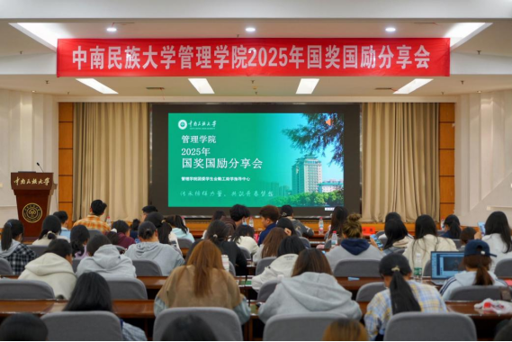 国奖风采展卓越,国励精神鼓人心。11月5日晚,管理学院2025年国奖国励分享会于润良报告厅顺利举行。学院学工办工作负责人姚亚南、学院勤工助学指导中心负责老师谢鹏、学院团委学生会指导老师何港、2025级辅导员田尧、2024级辅导员侯奉嘉出席本次活动,学院团委学生会主要负责同学及近200名2025级本科新生参加,会议由文工团主持人金靓琪、崔彩轩主持。