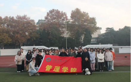 (图为管理学院师生升旗仪式合影,李佳雯摄)